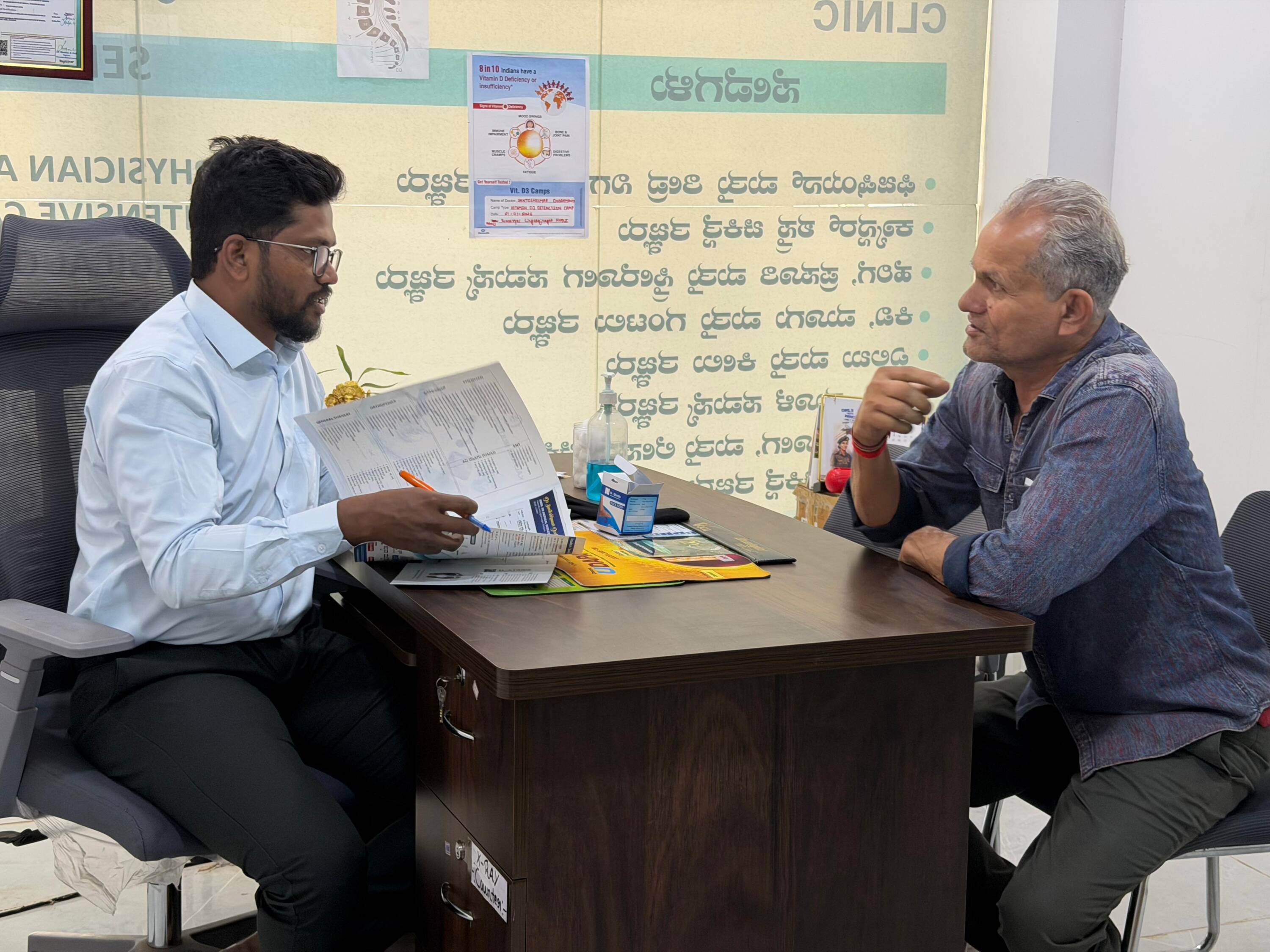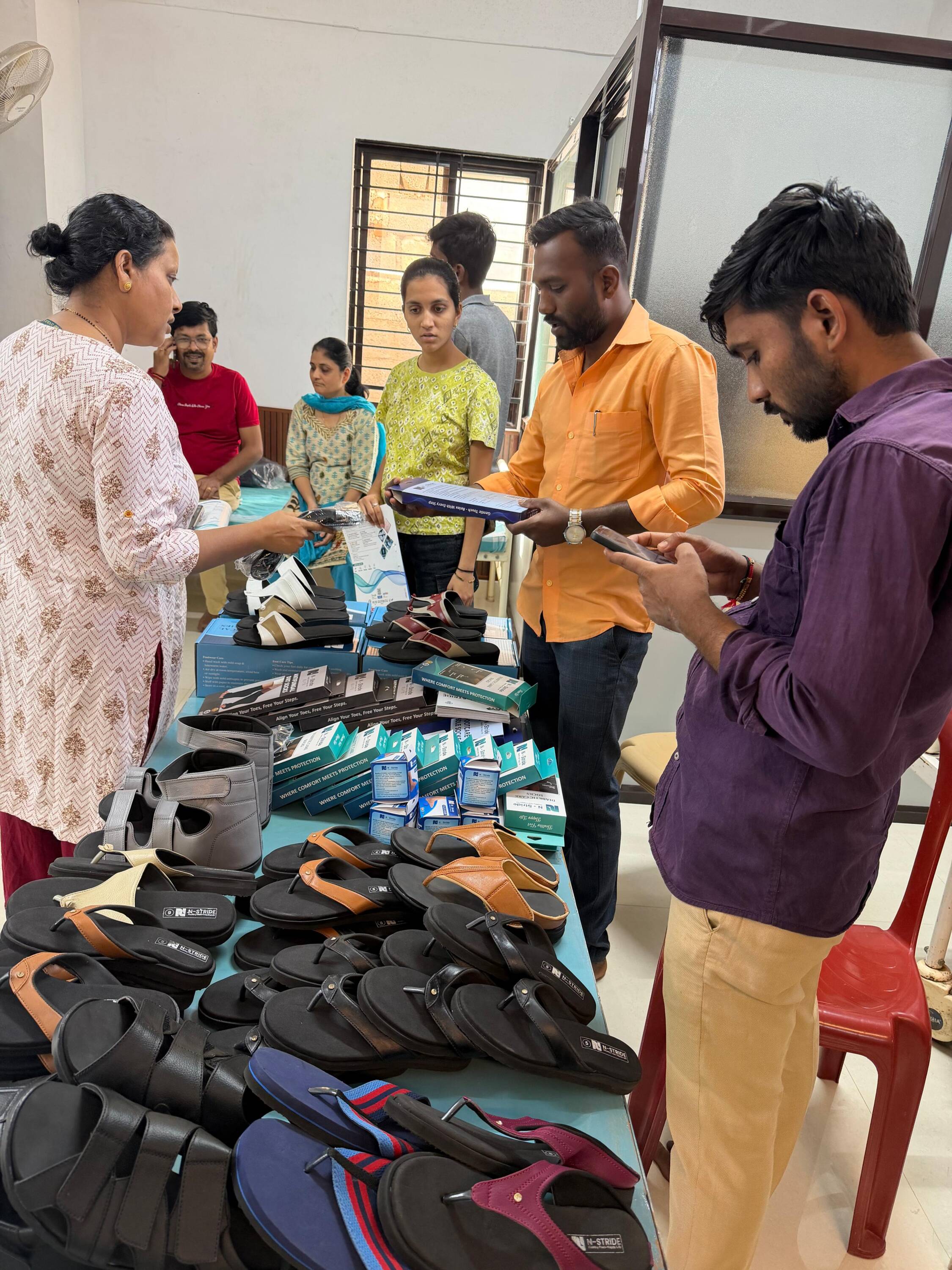 During our recent camp, Dr Santosh Kumar Doddamani, General & Laparoscopic Surgeon and Diabetic Foot Specialist, screened many patients and identified several high-risk feet early, helping prevent serious complications. Along with him, Dr Chetan K Ganteppanavar, Physician & Diabetologist, optimized treatment for patients with uncontrolled diabetes. Orthopaedic and spine support was provided by Dr Mrityunjay Battur.